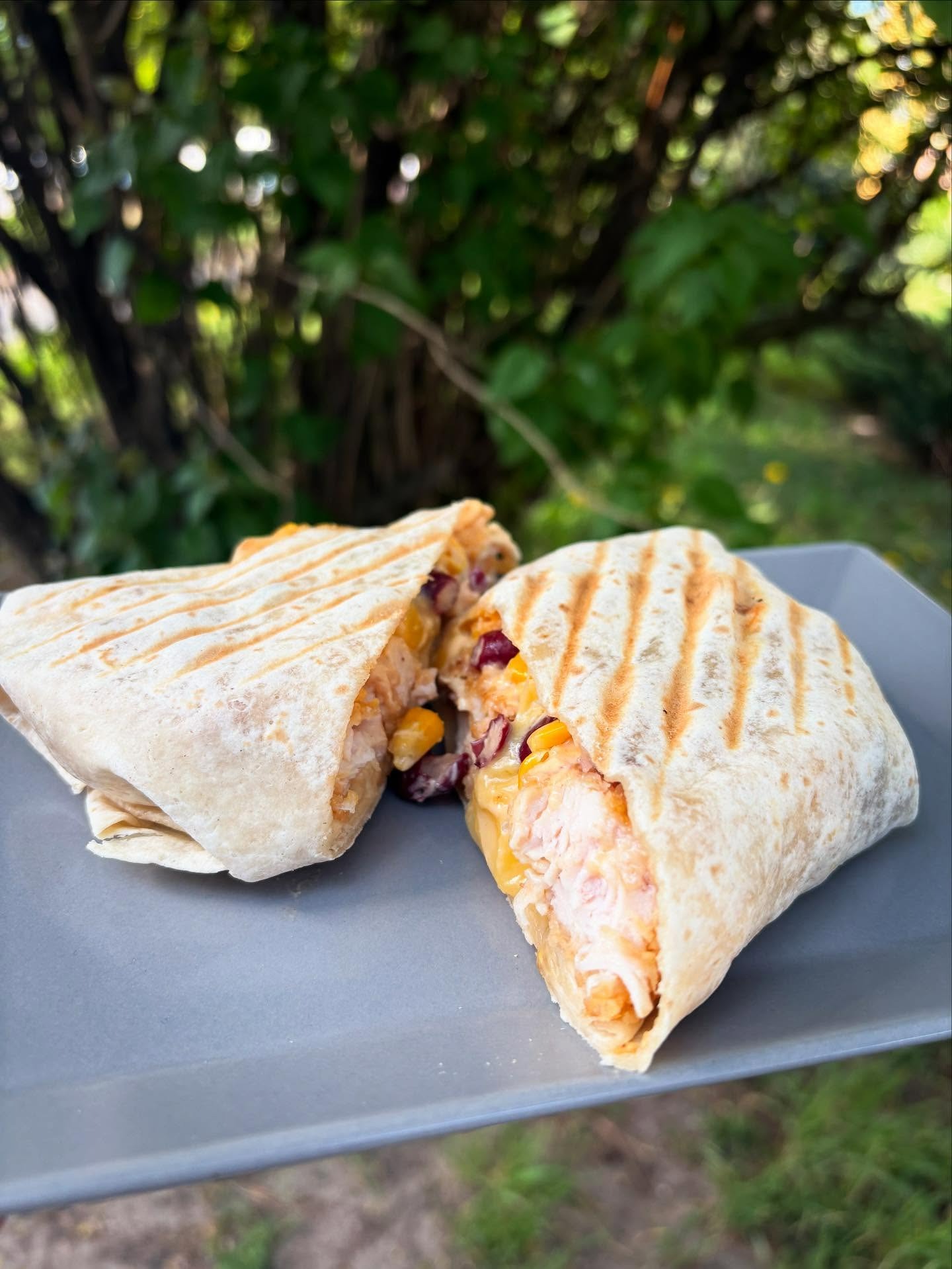 mięso, nachosy, jalapeño, fasola, kukurydza, sałata, pomidor, ogórek, cebula, sos salsa, sos majonezowo - musztardowy -